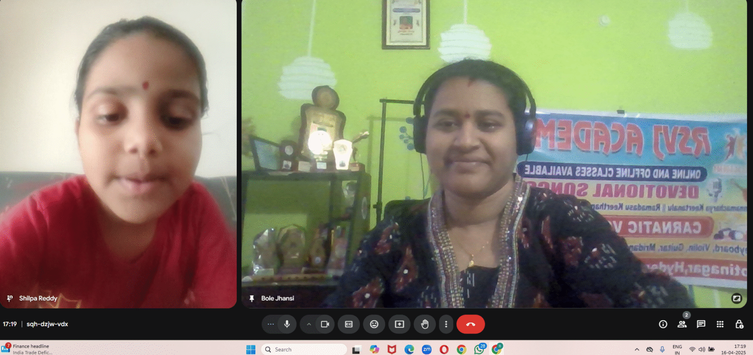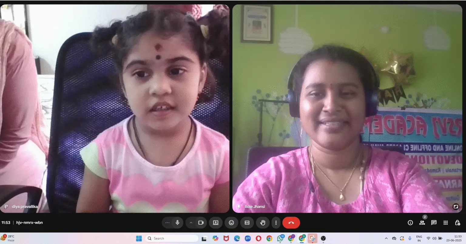 Being in Canada, I was worried about finding a good teacher for my child. But RSVJ Academy’s online classes are amazing! Jhansi garu makes sure every student gets personal attention, and my son loves learning Geethams and Bhajans. He never wants to miss a class!