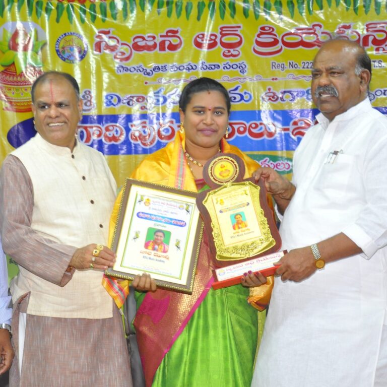 She was felicitated with the Ugadi Puraskaram 2025 by Honourable Speaker of Telangana, Shri Madhusudhana Chary Garu, recognizing her outstanding contributions as a Carnatic Vocal Music Teacher.